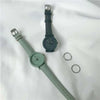 Com mostrador minimalista e pulseira de couro multicolorida, ele adiciona personalidade e estilo a qualquer look — seja para o dia a dia ou um passeio descontraído.