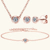 Um trio que reflete sofisticação em cada detalhe. O Conjunto Rose Lumiére une colar, pulseira e brincos em acabamento ouro rosé, irradiando brilho delicado e atemporal. Ideal para mulheres que transformam momentos comuns em memórias inesquecíveis.