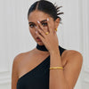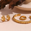 Um conjunto imponente que une brincos e anel em design robusto e luxuoso. O Majestade é inspirado na elegância atemporal do dourado intenso, perfeito para mulheres que não passam despercebidas.